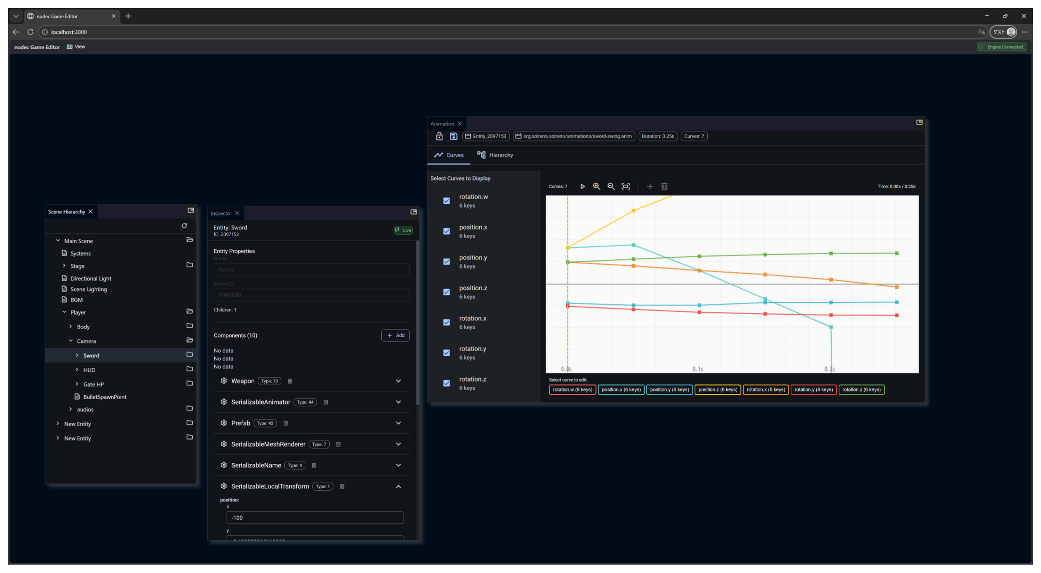 npm installで依存関係をインストールnpm run devで開発サーバー起動 (localhost:3000)- Engine RuntimeがEditor Server有効(ポート8080)で起動している必要がある